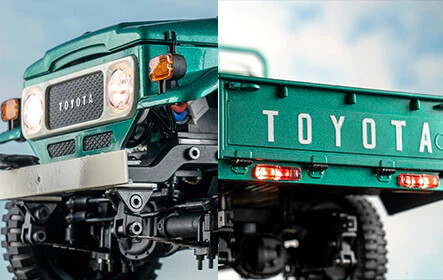 To create this officially licensed RC version of the TOYOTA FJ45, FMS super-finely restores the real car, and the degree of restoration is no less than that of the static model.