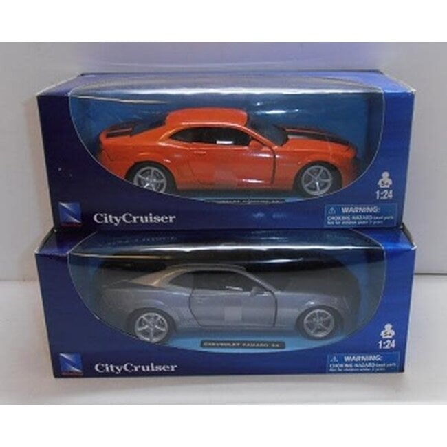 NEWRAY 1/24 CHEVROLET CAMARO SS OPEN HOOD- SILVERY GREY AND ORANGE COLOUR sold as individuals