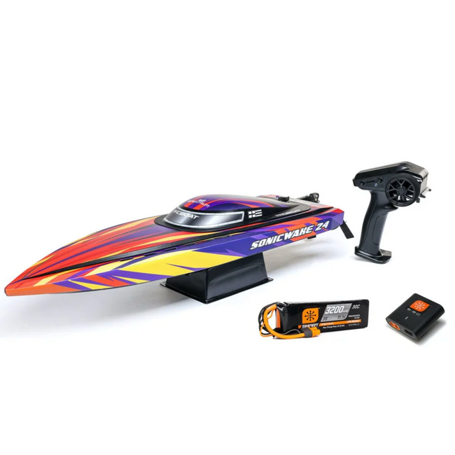 The Sonicwake 36-inch Self-Righting Deep-V features a ballistic 40x68mm 4-pole Spektrumâ„¢ Firmaâ„¢ 1900Kv water-cooled brushless motor capable of propelling the boat to speeds in excess of 50+ MPH.