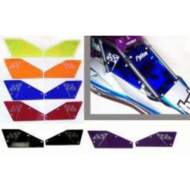 Python Motorsports brings you these new flashy colored side windows. These bright colors have edges that look like they are lighted up for that super cool look. They have laser etched flags on them for added style. They are available in 6 color colors (black color is not tinted, its solid black)and include all stainless steel mounting hardware and black nylon clips. These will fit the hpi baja 5b and 5b ss. Click