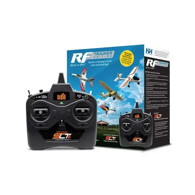 RealFlight Trainer Edition runs on a wide variety of PCs (Personal Computers) from low-cost laptops to “gaming” desktops running Windows® 10 or 11. It's available as software-only for use with a compatible USB-equipped transmitter including the Spektrum™ NX6 to NX20 – or the Spektrum InterLink® DX Simulator Controller, which connects directly to a USB port for easy plug-and-play use, and is modeled after Spektrum transmitters including all standard switch locations and functions so it works just like your favorite radio! It’s also available with the Spektrum WS2000 USB Dongle that’s compatible with Spektrum 2.4GHz DSMX/DSM2 equipped transmitters, like the DXS transmitter included with many of the most popular Ready-To-Fly (RTF) trainer aircraft, for wireless operation. It’s even available with a Spektrum SLT6 transmitter that can also be used to fly ultra-micro/UMX (Ultra Micro eXtreme) aircraft equipped with receivers featuring Spektrum SLT FHSS technology!