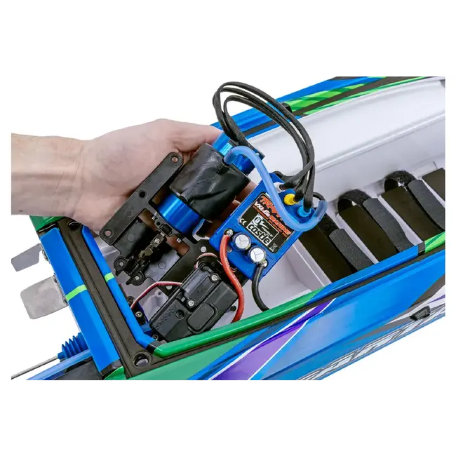 The Traxxas Spartan SR 6S is a high-performance RC boat designed for incredible speeds and exceptional handling on the water. Its sleek hull and powerful brushless motor system can propel it to speeds exceeding 50mph, delivering an adrenaline-filled power boat experience. This boat features a self-righting design, ensuring it flips back upright if capsized, while its rigid construction and waterproof electronics make it a durable and reliable choice for RC boat enthusiasts.